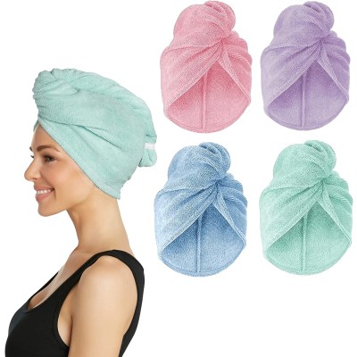 Twist Microfiber Hair Towel Wrap for Women and Men | 4 Pack | Quick Dry Turban